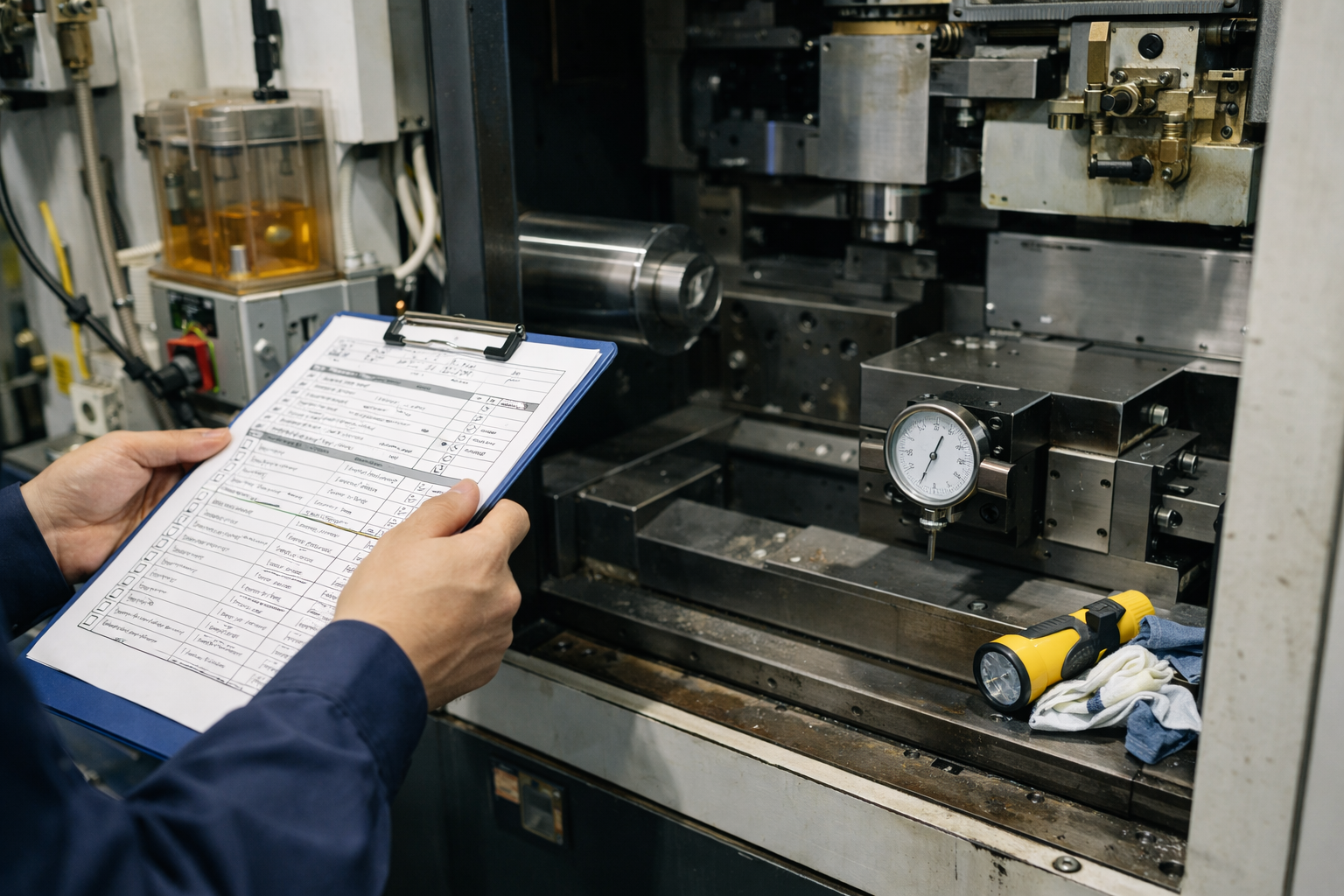 工作機械の予防保全とは、定期点検を通じて故障を未然に防ぎ、事後保全に陥らないための考え方です。